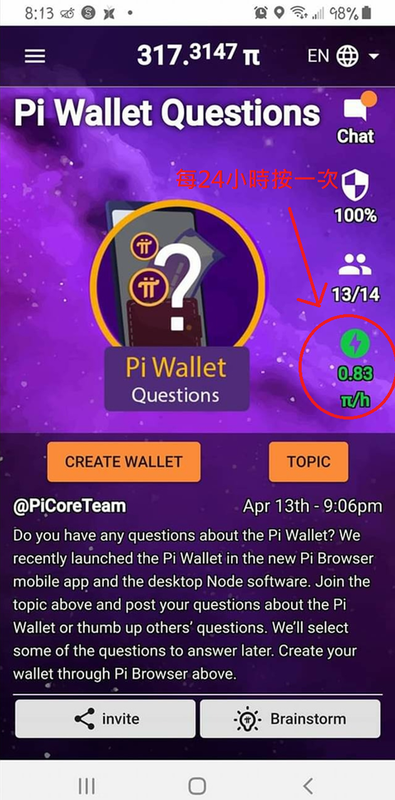 使用邀請碼可即時免費獲得1枚Pi 幣和每小時0.05幣的加成。
