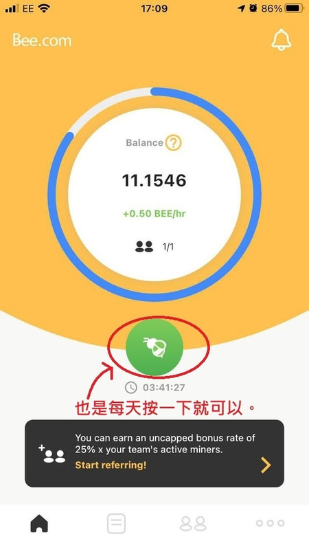 使用邀請碼可即時免費獲得1枚Bee幣和每小時0.1幣的加成。
