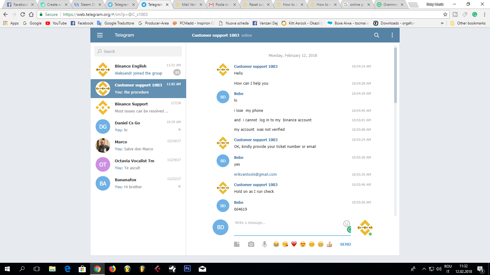 But guess what? i joined on :https://web.telegram.org/#/im?p=@binanceexchange and i asked if someone can help me