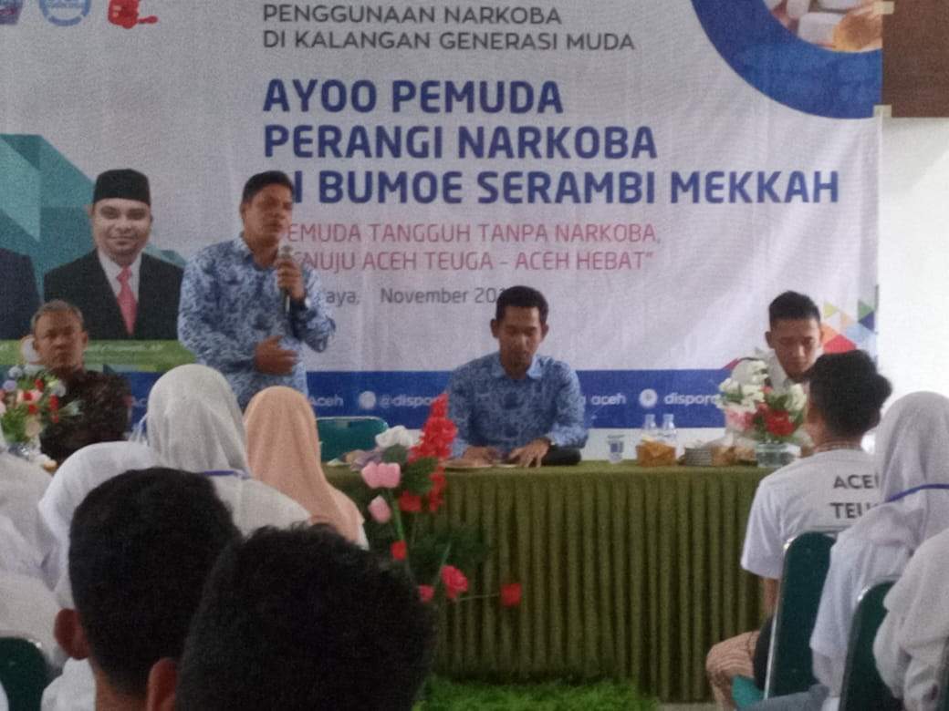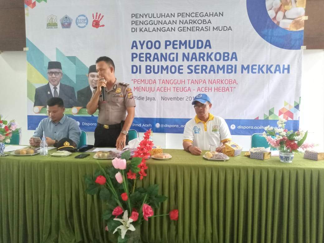 Sosialisasi Anti Narkoba di Pidie Jaya kembali dilaksanakan oleh Dispora Provinsi Aceh bekerja sama dengan BNN Kabupaten Pidie Jaya di Aula Wisma Ananda Meureudu.