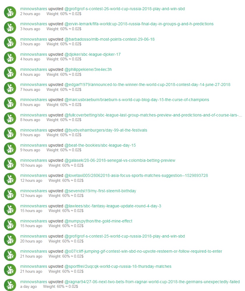 Right now there are 36 accounts that are in the test list to get upvotes from the @minnowshares account.