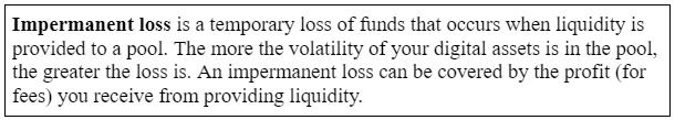 It is worth noting that placing your assets in liquidity pools can lead to an impermanent loss.