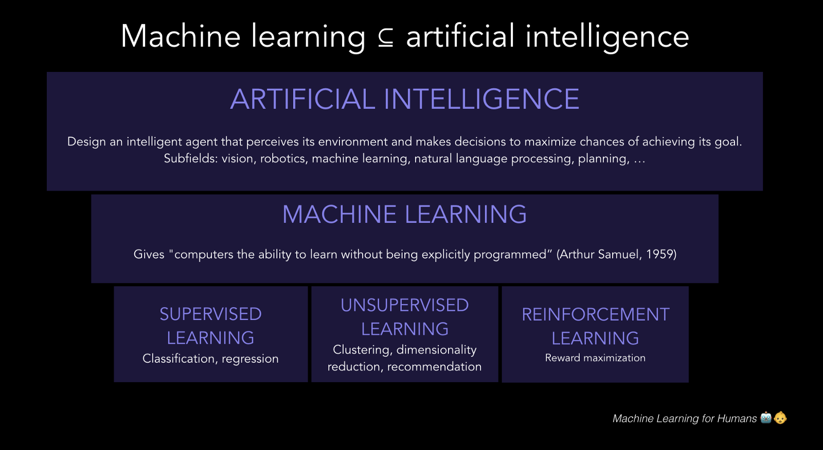 Machine learning is technically a branch of AI, but it's more specific than the overall concept. Machine learning is based on the idea that we can build machines to process data and learn on their own, without our constant supervision.