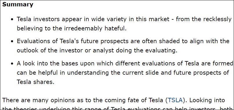 Ultimately I like the structure of articles on SeekingAlpha and some other sites. They use short lists instead of the classic introduction, as you see an example on the picture: