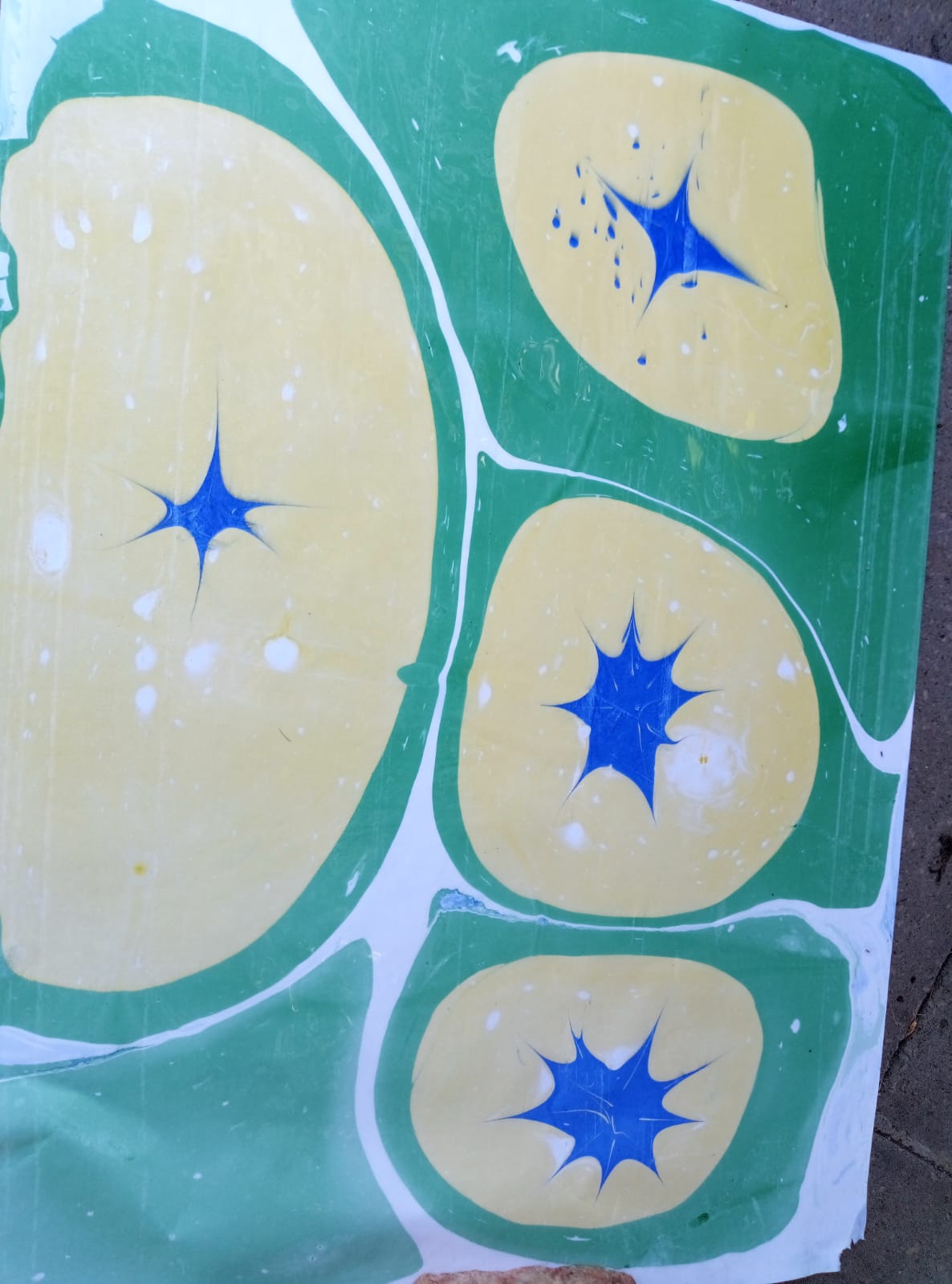 I would like to tell you about an experience that I enjoyed very much, in case it might be boring to give information constantly. I had the opportunity to experience the art of marbling, which has an important place in Ottoman culture. Marbling is the art of painting with paints on concentrated water. It is a very effective and enjoyable field of work in reducing stress. Below I am sharing the way I experienced it for the first time. I think I'm very successful compared to what was done for the first time.