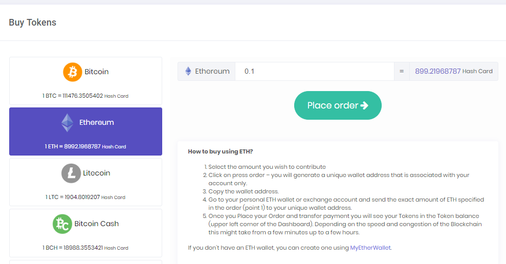 - Перейти на сайт HashCard . Нажать купить токены