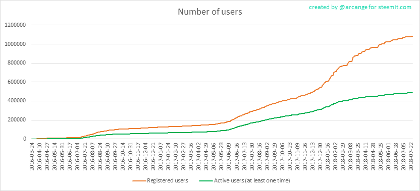 Im unteren Diagramm sehen wir die Gesamtzahl der Nutzer seit März 2016.