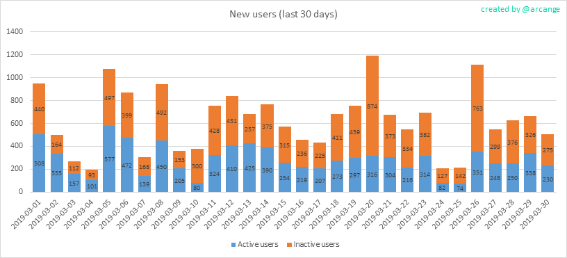 Durchschnittlich kommen wir auf etwa 700-800 neue Nutzer pro Tag würde ich sagen, das war im Juli 2018 auch nicht viiieeelll besser - nur im März 2018 hatten wir ein Maximum von etwa 20k neu registrierten Nutzern.