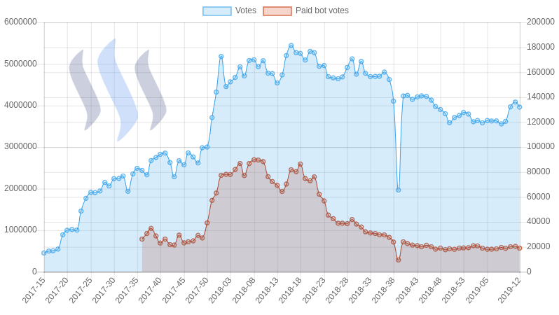 Die Bot Votes machen nur etwa 0,5% der Gesamtvotes aus, obwohl zB für den Minnowbooster auch "nicht erfassbare Einzelnutzer" voten können ... Ist also nicht sehr aussagekräftig imo