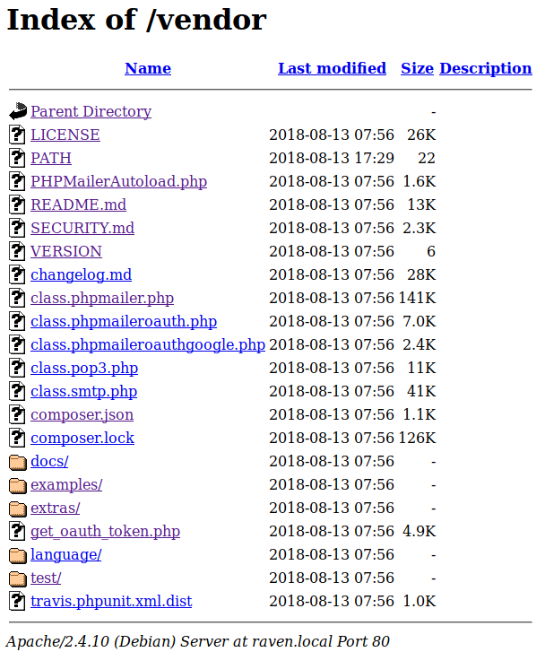 No dice. Time to move on then. The /vendor directory was the last item of interest from the dirb results.