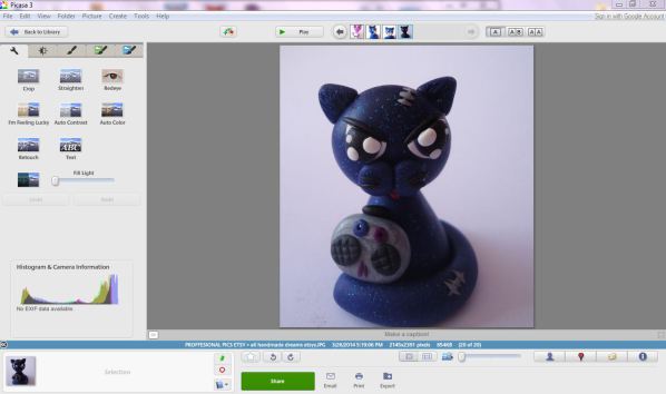 We open Picassa. A window, like this one, that shows the picture, will appear.