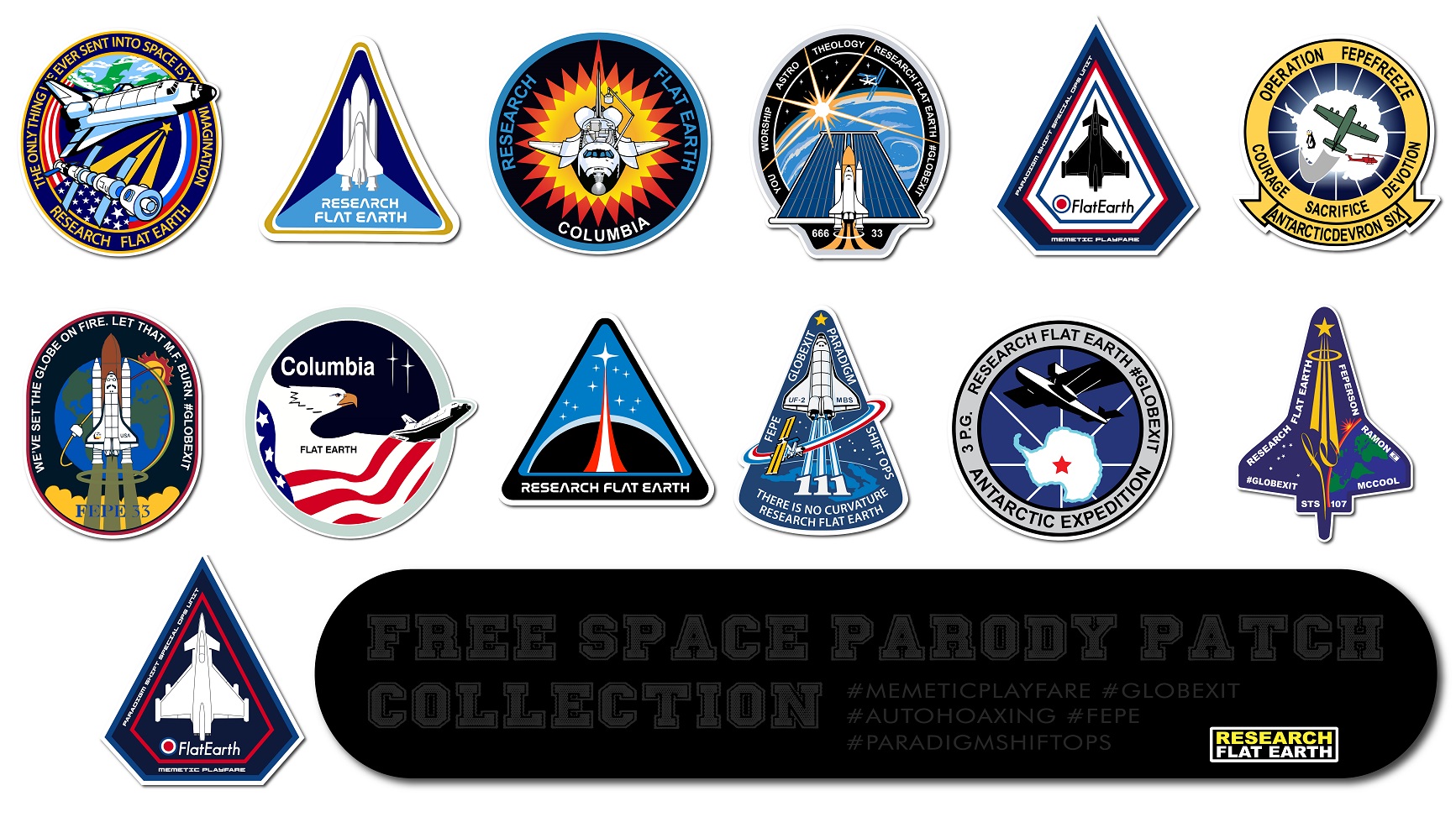 Parody logos and space missions #FlatEarthStickers vector designs and large PNG files;