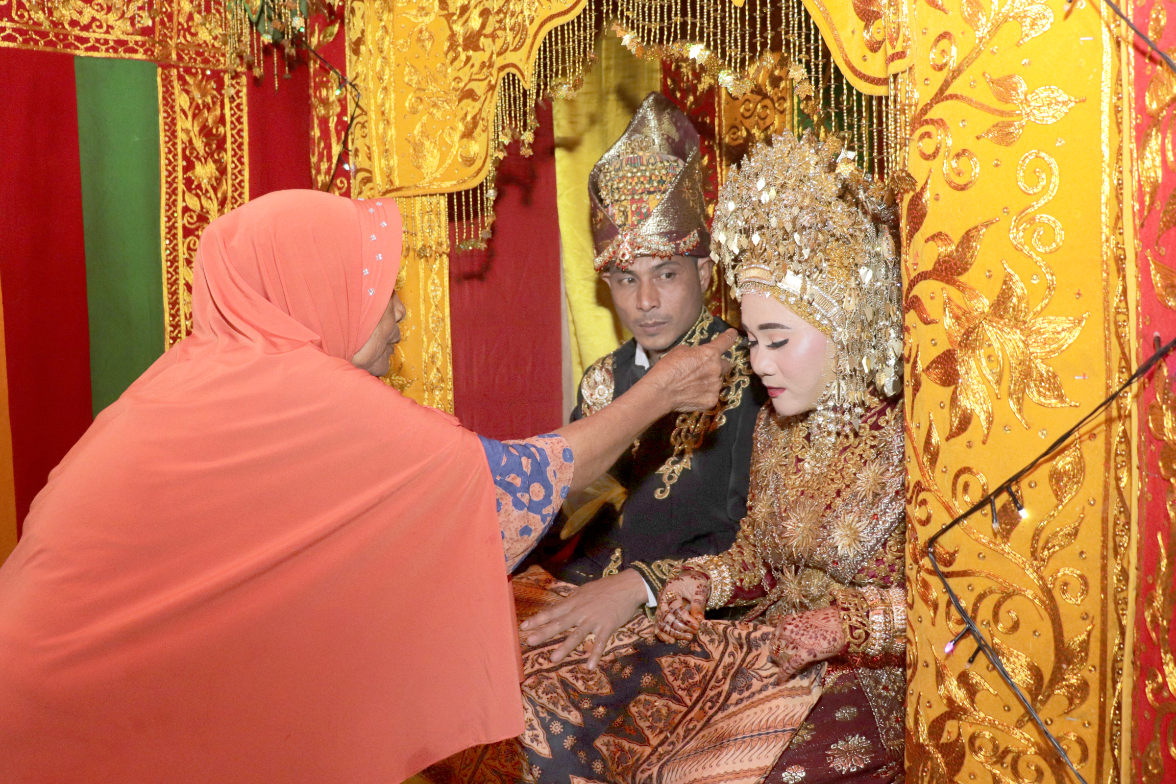 Tradisi Peusijuk pengantin pria dan wanita. (The Peusijuek tradition of the bride and groom).