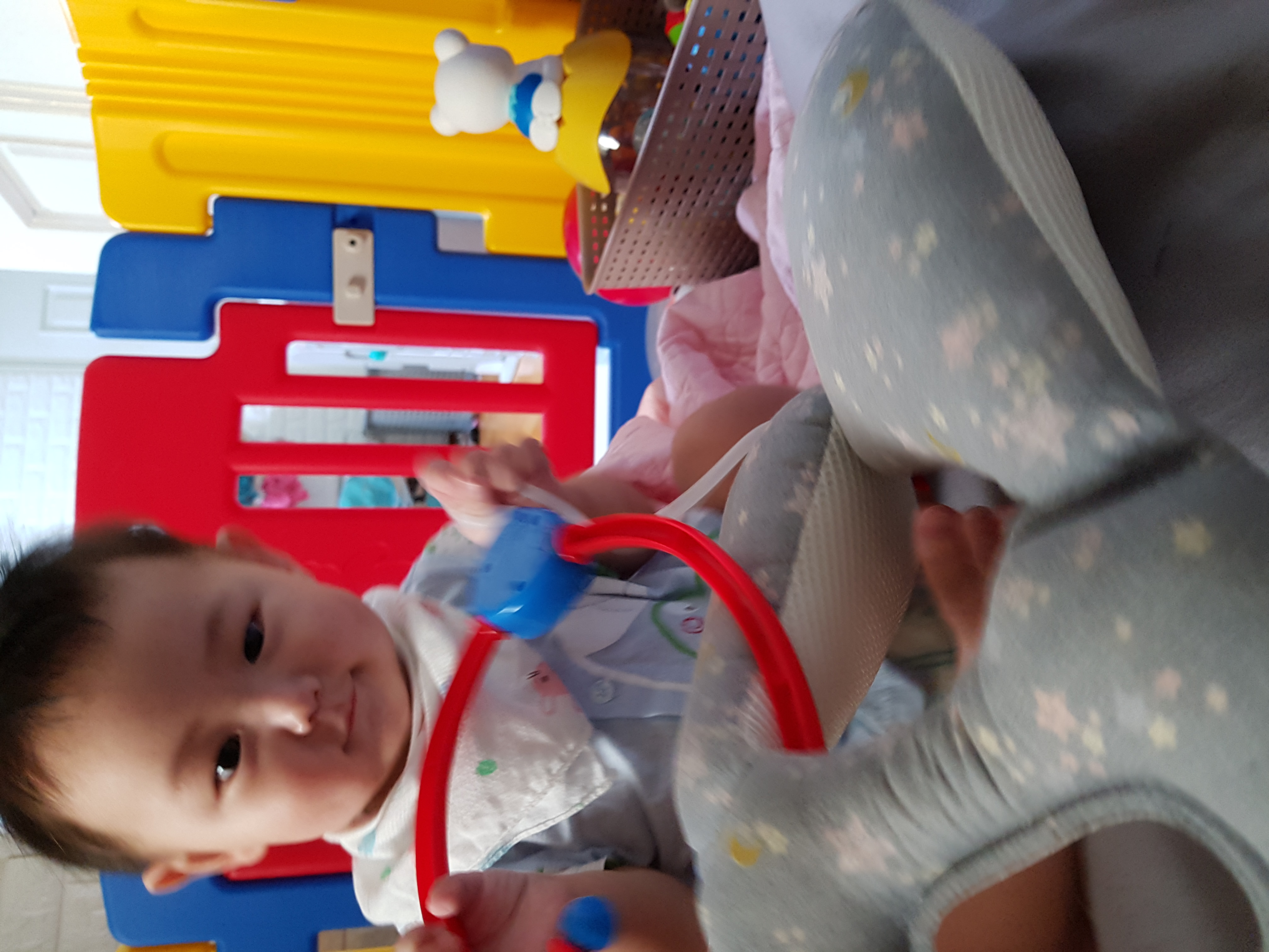 The toy that babies play well with these days is the hospital play set. I'm only interested in stethoscopes, there are lights and sounds, and there are various functions...It seems to play with the fun of chewing the long strings over there. Maybe because the months are young, I don't play with them perfectly, but in my mother's eyes, I seem to be the best doctor in the world.