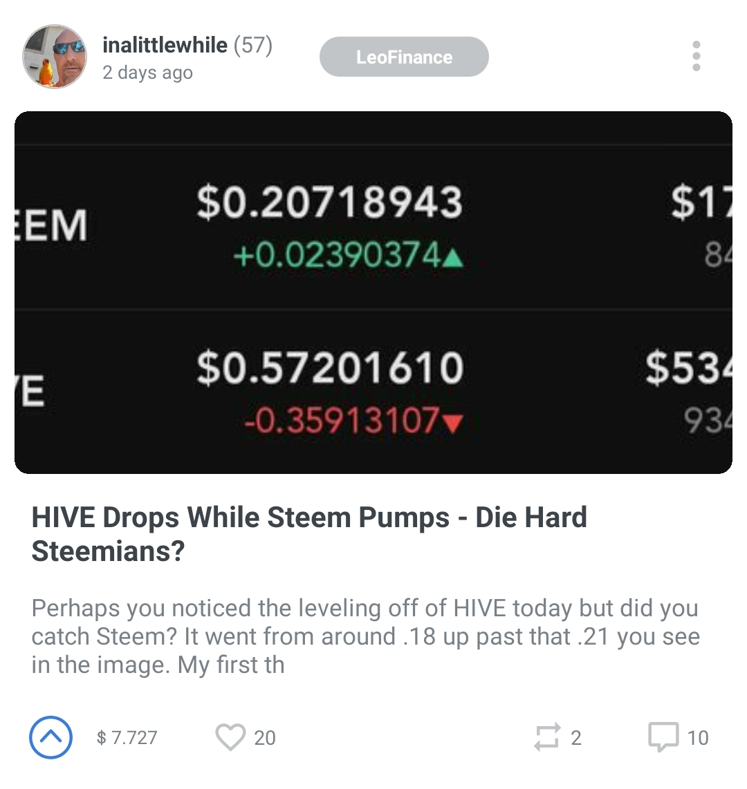 https://esteem.app/hive-167922/@inalittlewhile/hive-drops-while-steem-pumps-die-hard-steemians