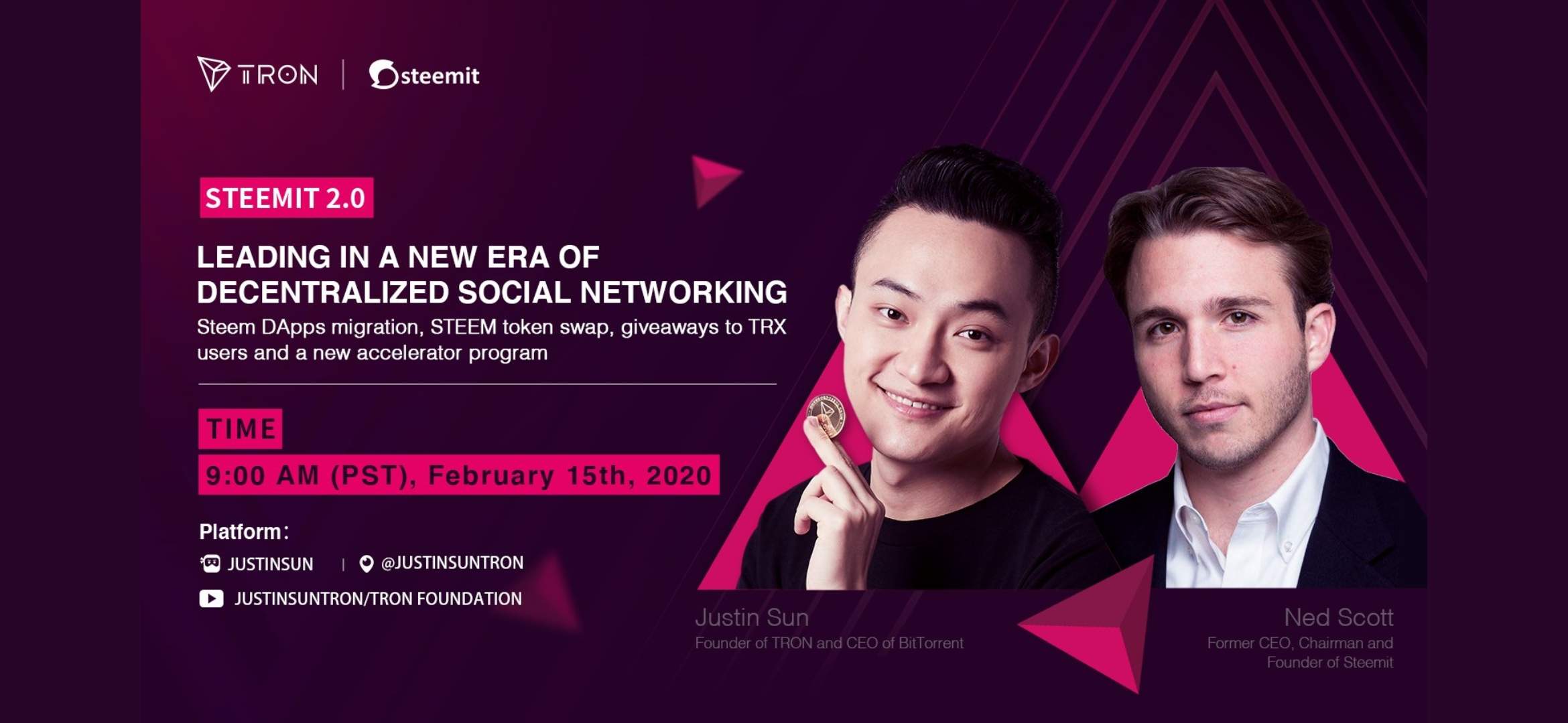 Steem 2.O supporting Tron founder Justin Sun the future of decentralized social media.