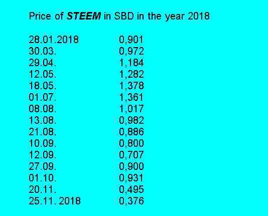 I have painstakingly noted the US$ daily prices from the available charts of steem and SBD, at rather irregular intervals, and calculated the "internal" steemprice from them.