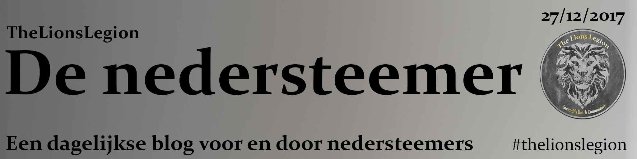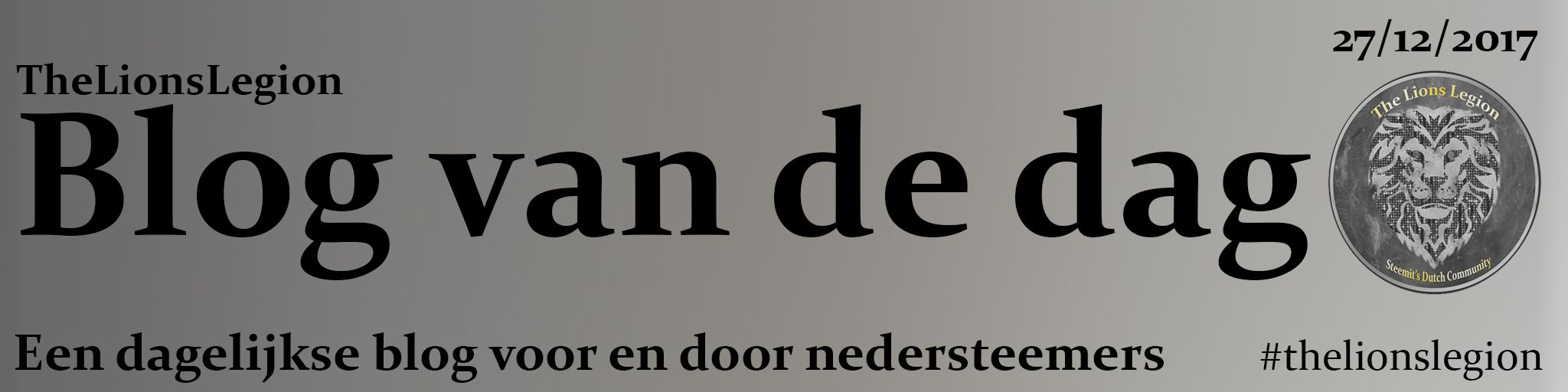Eerst en vooral willen wij u alvast prettige feesten toewensen, en wensen wij u zeer veel steem en steemdollars voor 2018 toe. Maar omdat het niet enkel om cryptocurrency draait op steemit, brengen wij u terug onze vernieuwde ‘the lions legion daily report’’