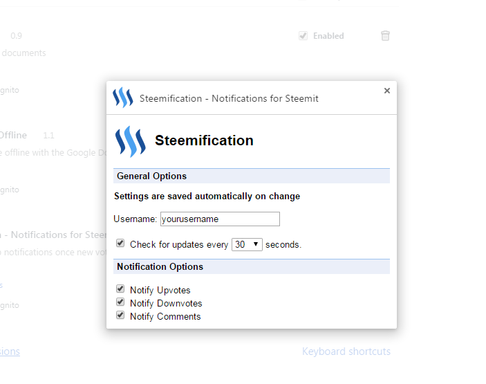Steemification offers the long missing notifications from the social media platform steemit.com. The development is ongoing and the extension will be improved over time.