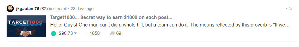 Join our Telegram community from https://web.telegram.org/@target1000 If you want to resteem your post using my service then send 0.5 SBD/Steem to @jkgautam75 with post url as memo.
