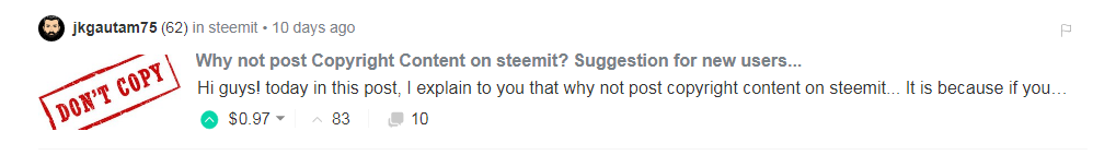 1. Why not post Copyright Content on steemit? Suggestion for new users...