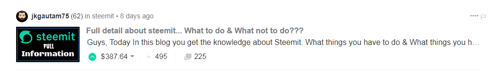 One day I was searching for earning money on YouTube. The list of videos is coming. In one of the thumbnails of those videos, I have seen the steemit. It is said in the video that If anyone writes a post on steemit and get upvotes then He will earn money... After that video, I start researching on steemit... Searched for Steemit up to a week.