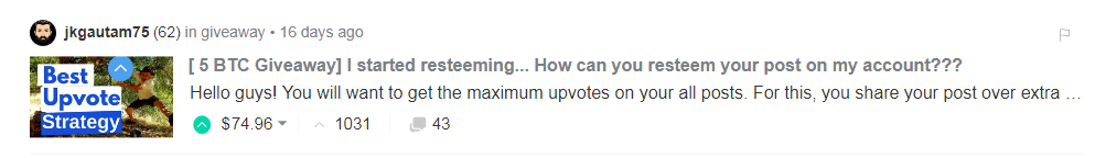 24. [ 5 BTC Giveaway] I started resteeming... How can you resteem your post on my account???