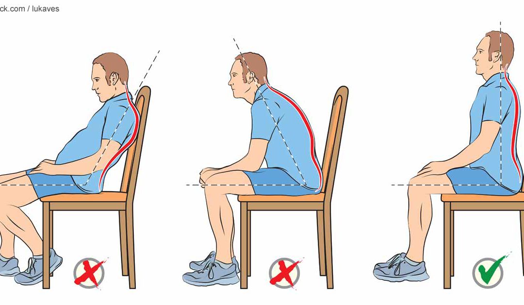 Correct posture of sitting: When we sit in a chair, our hips should be as far back in the chairs as possible. Head, spinal column, shoulder and hips should be in straight line and erect. Legs should touch the ground and should not be in a hanging position. Thighs should be in a horizontal position. While we read, the book should be on the table but the book should not be too far away or near the eyes. The approximate distance between the book and the eyes should be at least 30 cm. If we do not follow this rule then eyesight problems may occur. For writing, a table with slight inclination towards the outside is appropriate.