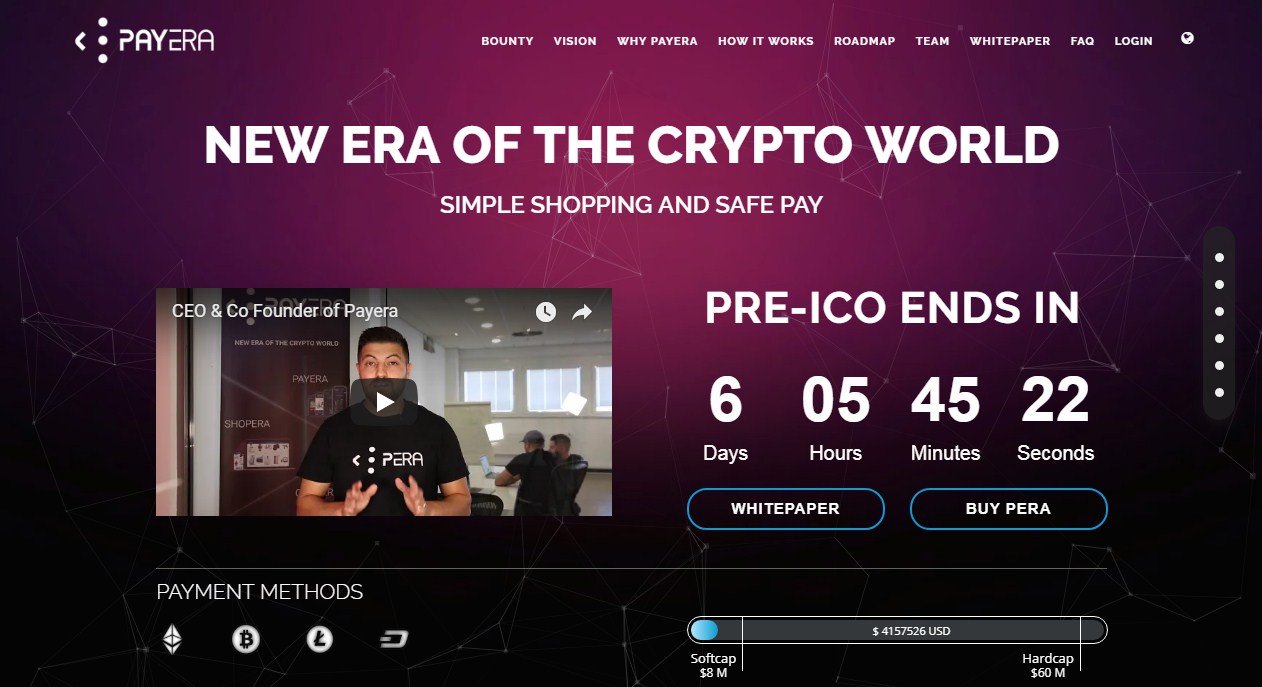 PRE-ICO PAYERA PAYMENT METHODS we accept ETH-BTC-LITECOIN-DASH.