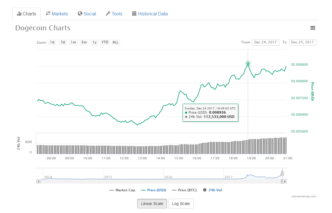 Dogecoin just has witnessed its all-time high price in 4 years since launch in late December 2013.