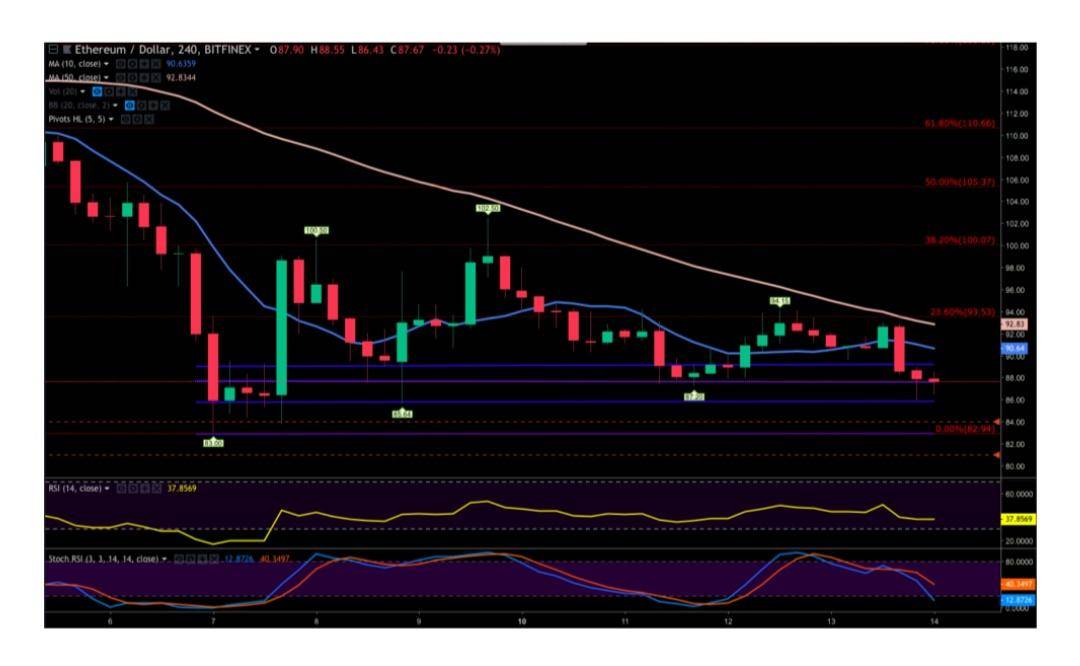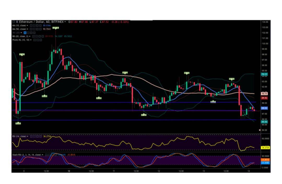 Ethereum price dropped supports at $89, $87.60, $85.90. Now $83 – $80 appears to be the last support before a steep fall. Ambitious traders should either wait patiently for a bullish pattern to present itself or attempt to catch and oversold bounce if ETH drops below $83.
