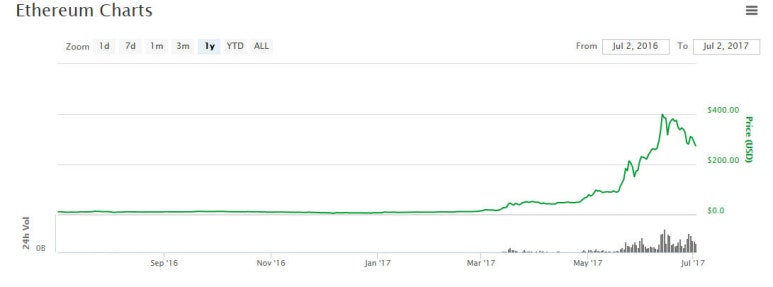 [Reference : The price of 'ethereum', http://coinmarketcap.com/]