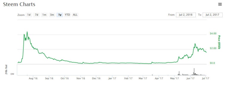 [Reference : The price of 'STEEM', http://coinmarketcap.com/]