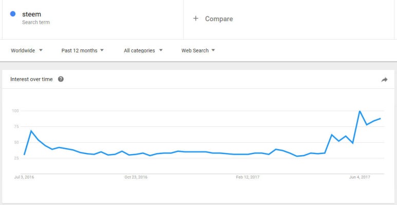 I've searched for 'steem' in Google Trends.