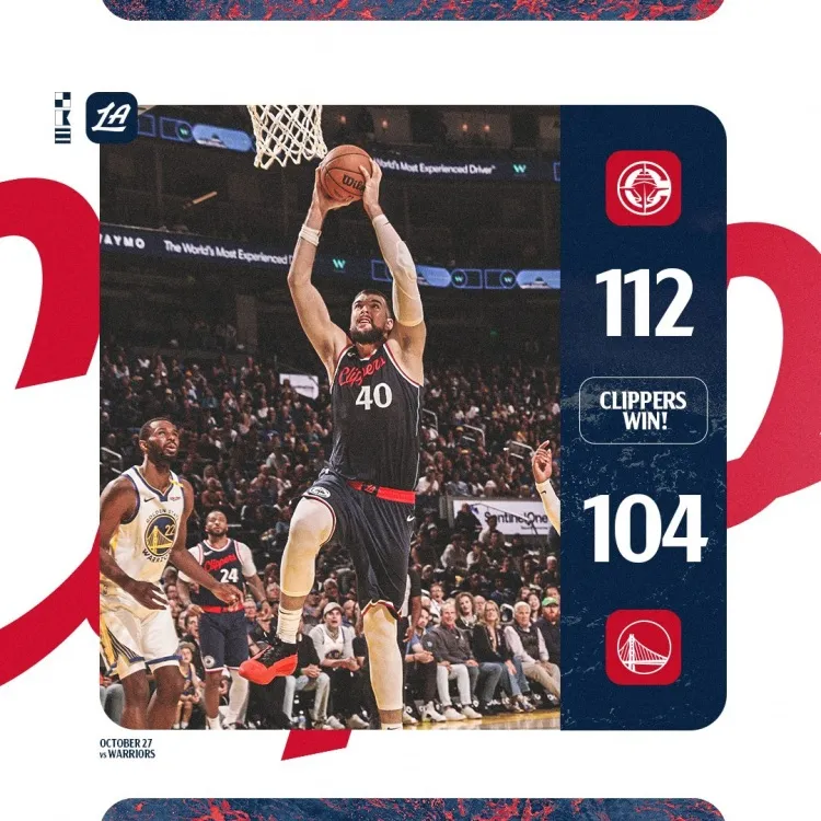 NBA常规赛,快船客场112-104击败勇士,收获两连胜。