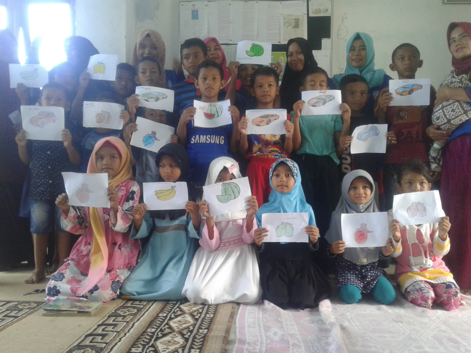 Anak-anak adalah generasi penerus bangsa yang butuh sentuhan kita agar mampu berekspresi. Salah satu ekspresi yang dilakukan adalah dengan membawa kebahagiannya dalam coretan warna-warna.