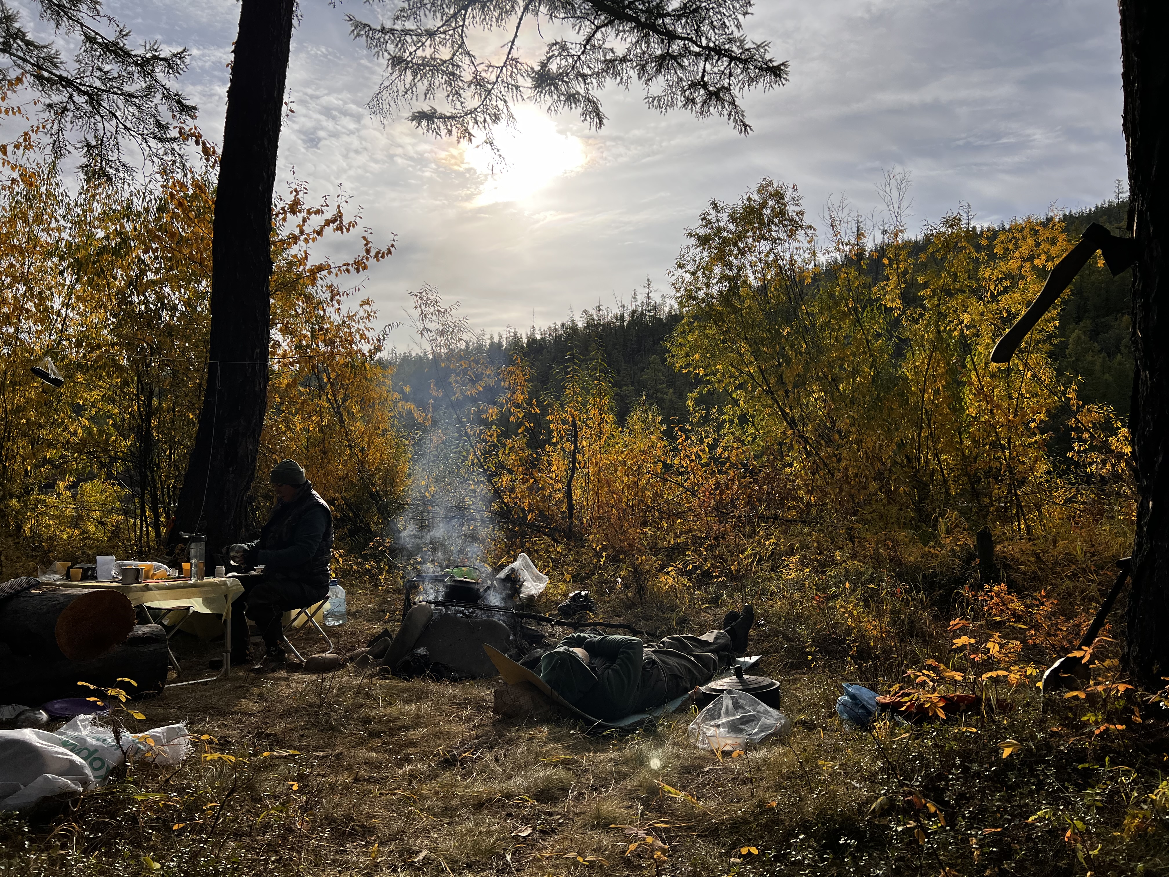 Many thanks to our dogs Labrador Khan and Rottweiler Misha for holding the defense and not allowing the wolves to come close to us. The fire was kept burning all night. It was not possible to fall asleep right away.