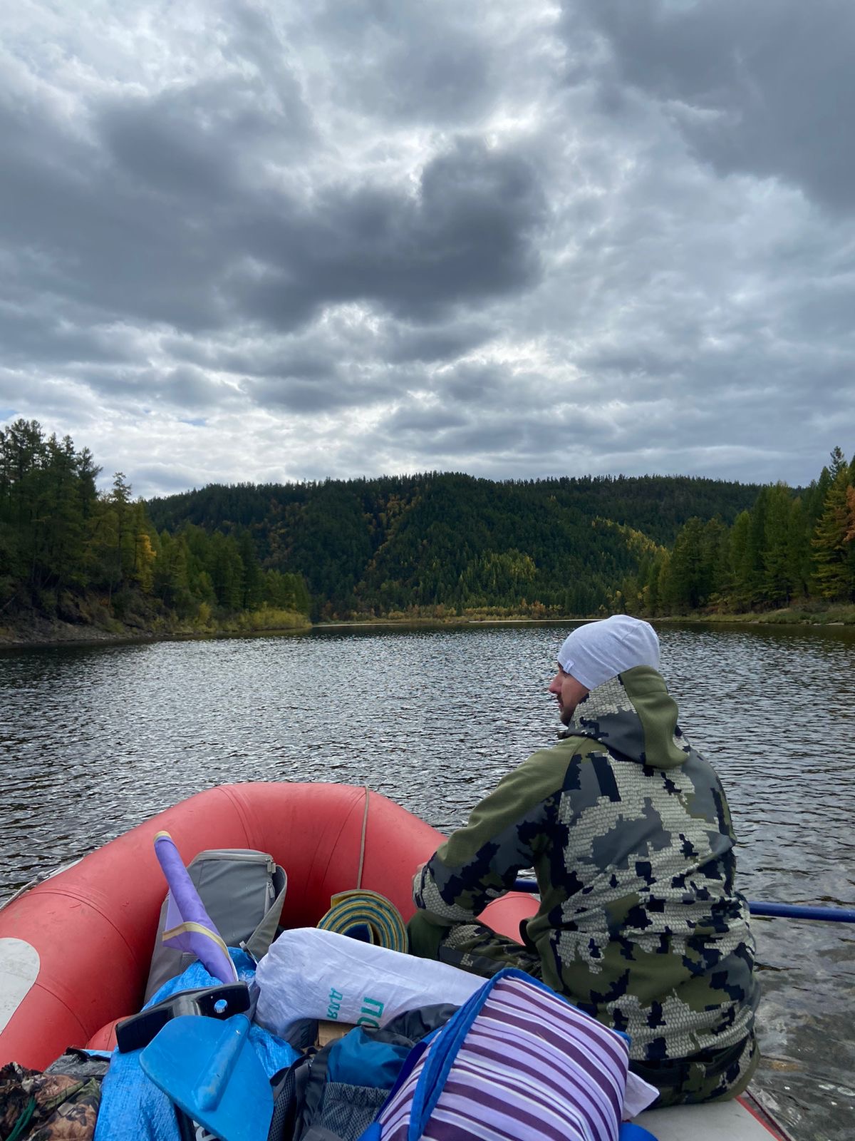 For the first time in my life I dealt with rafts - this is a special segmented inflatable boat with a reinforced bottom and sides, without rowlocks (oar stops). It was not possible to capture complex riffles; there was no time for a smartphone there.