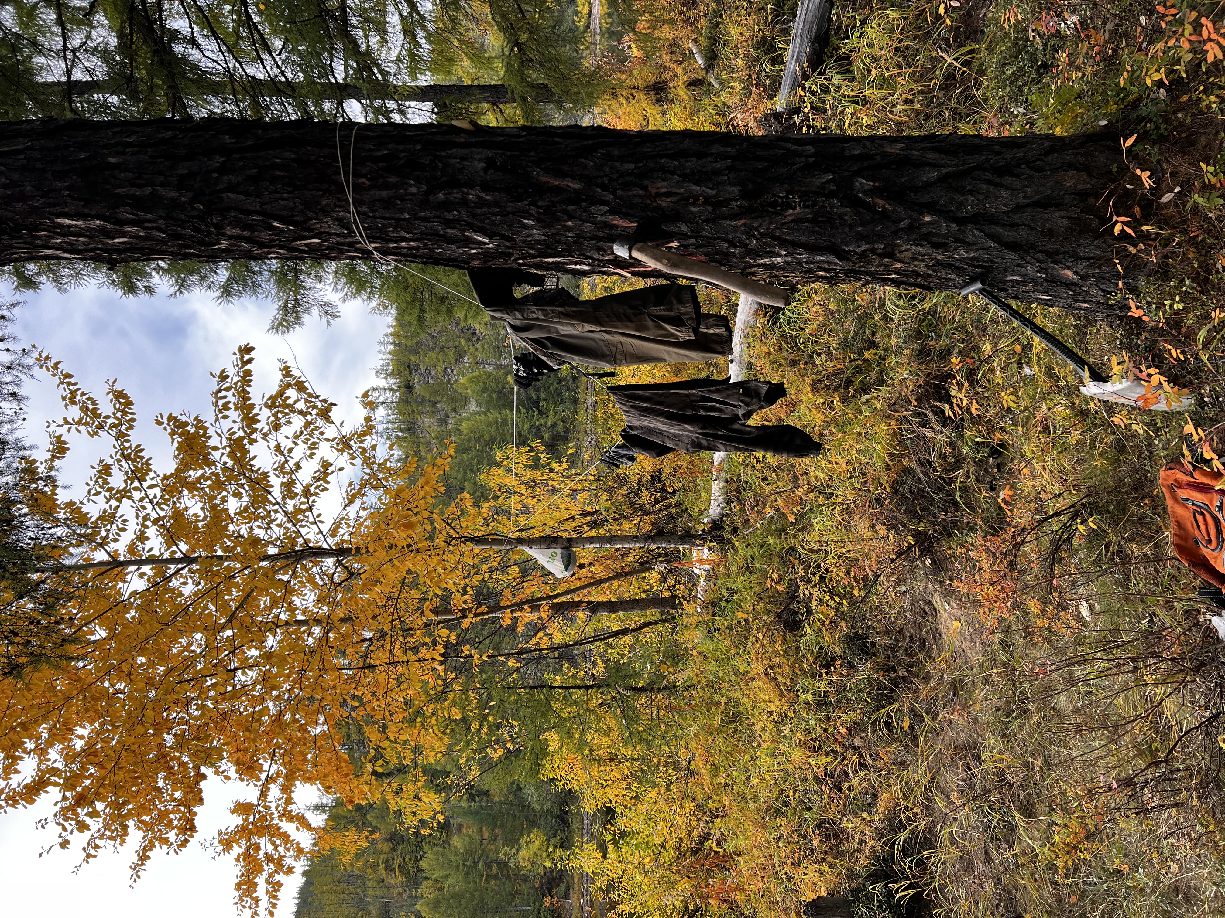 We walked along the stream, made rest on land, and set up camp in the forest for the night.