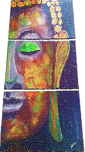 Multicolored buddha face paint technique cold painting on wood, edited in power point.
