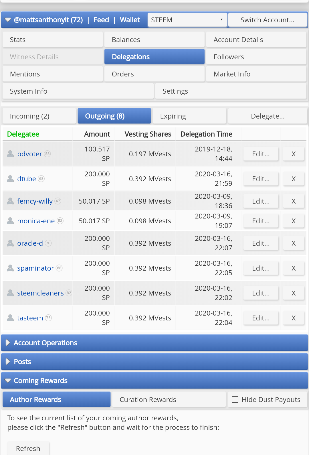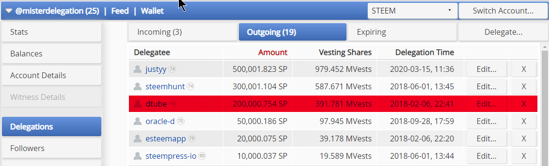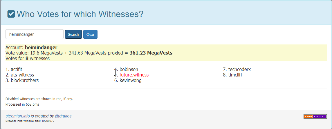 Not saying they asked for the delegation, but @dtube aka @heimindanger is not helping to reinstall our witnesses. DTube only votes for 8 witnesses and one of those witnesses is dead in the water.