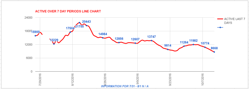 10 / 12 / 2016 - 8:52 AM EST STEEMIT NEWS FLASH : Active last 7 days daily line chart ( chart # 1 )