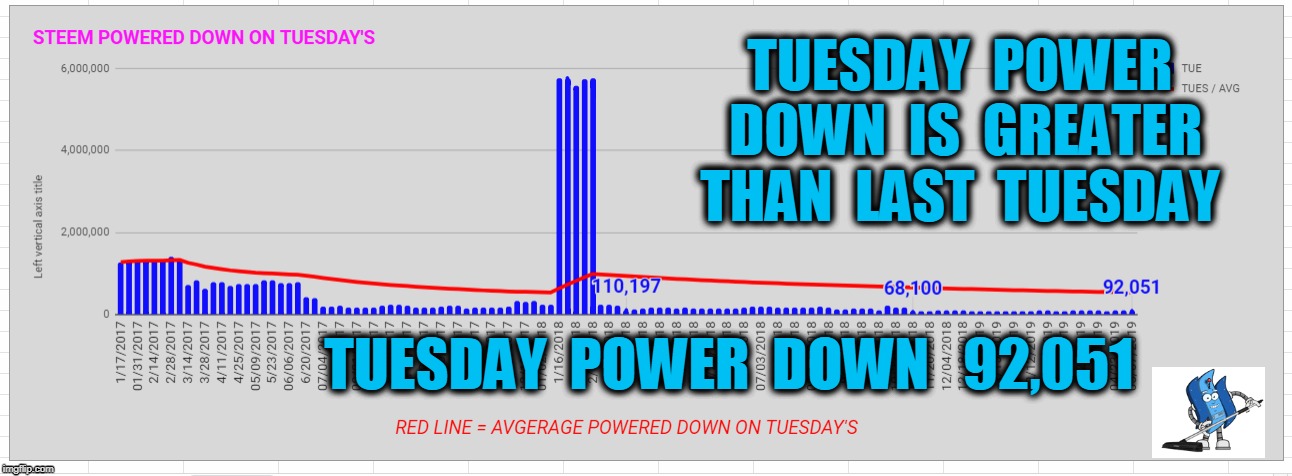 🐒 The Lowest Total Steem Powered down for one week was 656,278 the week of November 4 , 2018 through November 10 , 2018