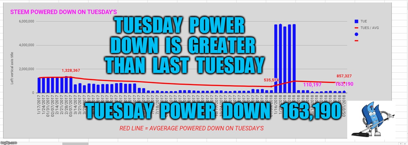 🐒 Total Steem Powered down this past week April 29 , 2018 through May 5 , 2018 was 1,080,489