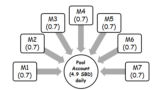 We arrive at a consensus to daily send and save at least 0.7 SBD in a common pool account.