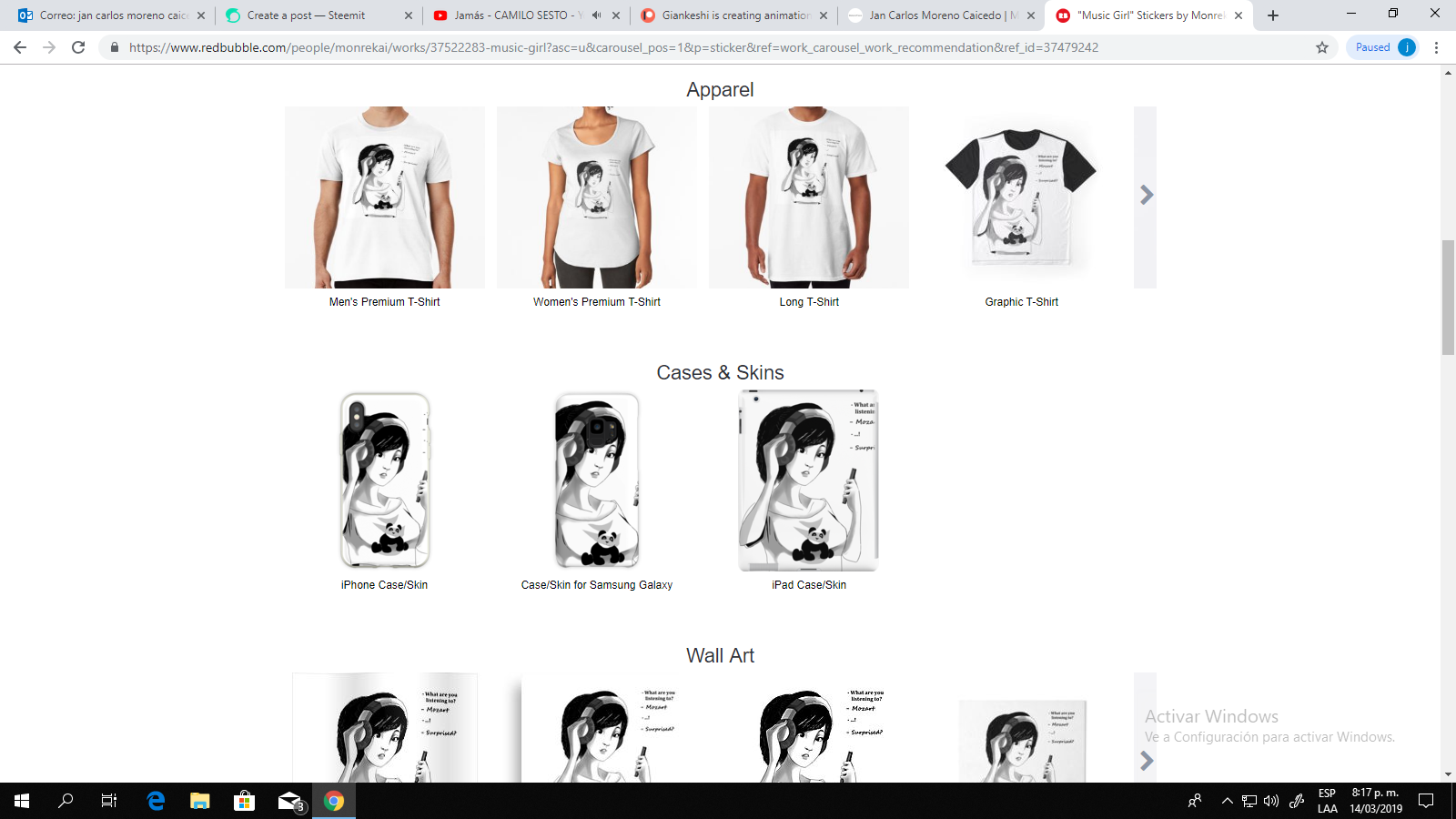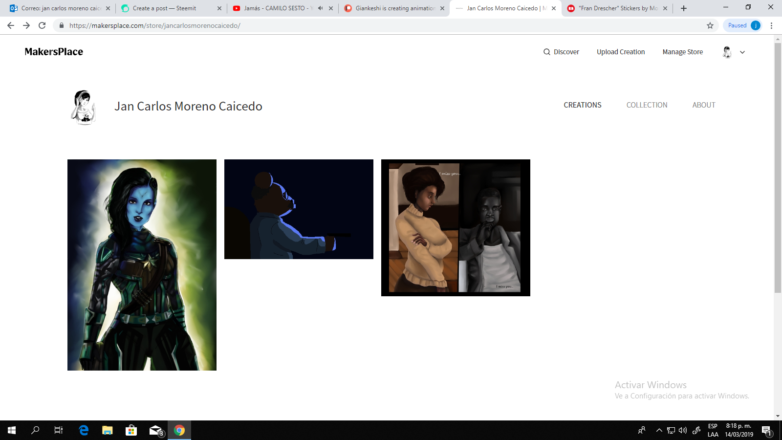 Como dije antes yo trabajo como artista profesional y ahora les estoy mostrando mis productos. Estoy en RedBubble and Makersplace si desean ver mis productos o comprarlos pueden hacer lo con total libertad y hasta hacemos descuentos en Makersplace