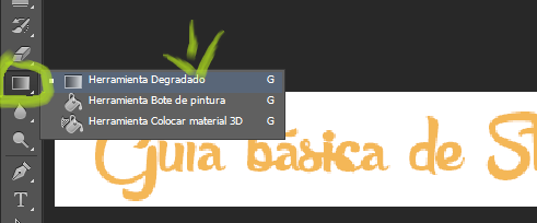 We will then go to the gradient tool. If another icon appears in that place, just click on it and the other options will appear; among them, the degraded one.