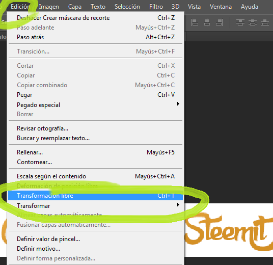 We will proceed to click on "Edit"> "Free Transform" or, Ctrl + T. to manipulate the layer.