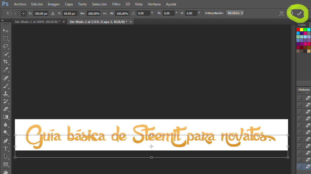 Next, we go to the Text tool and the subtitle of our point to be treated will be written. They can accommodate the text to their preference, enlarge and dwarf as they wish; As with the source that you like most along with the color.
