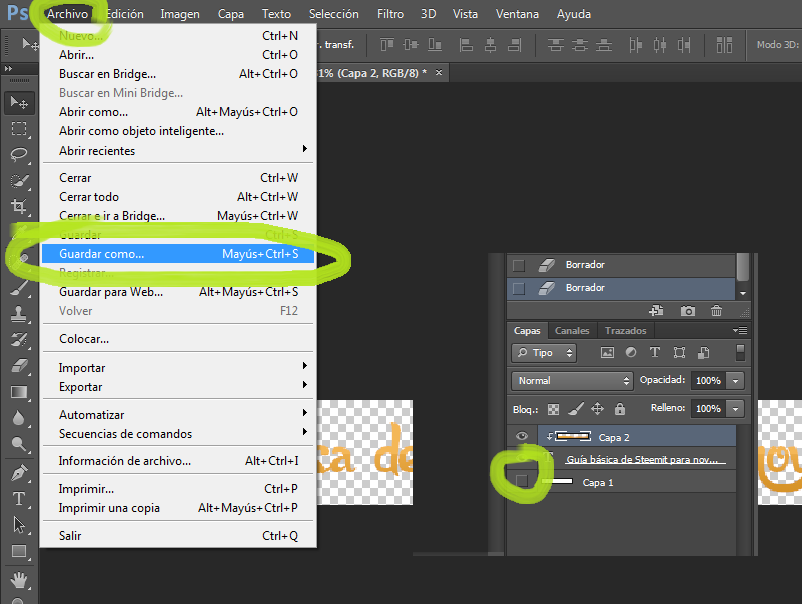 You should remove the visibility of the layer we draw in white to see what we do, do not forget this step. Then it will go to "File"> "Save as ..."